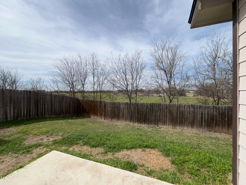 The outdoor space is an extension of the home's charm, with a private backyard offering a patio surrounded by a well-crafted privacy fence.
