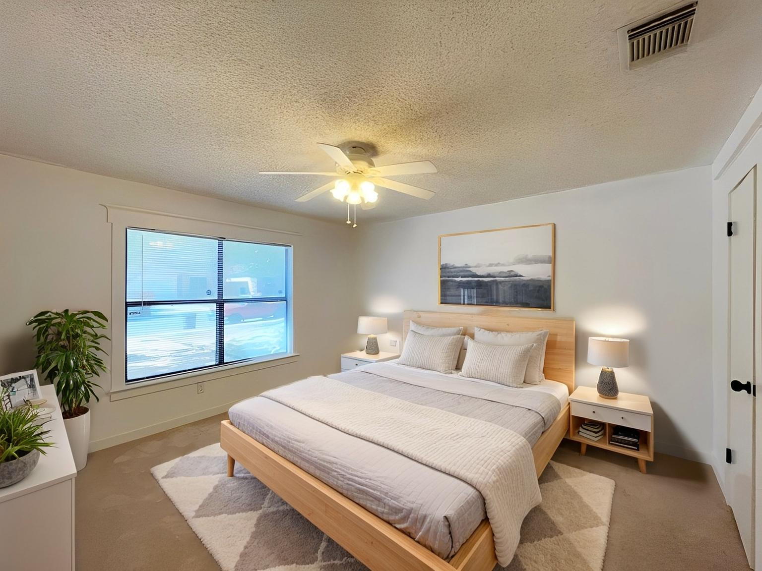 The spacious primary suite offers a quiet retreat, complete with a walk-in closet, walk-in shower and single vanity. Two additional bedrooms offer flexibility for guests, work-from-home setups, or creative spaces. A dedicated laundry closet with washer and dryer hookups makes daily routines simple and efficient.