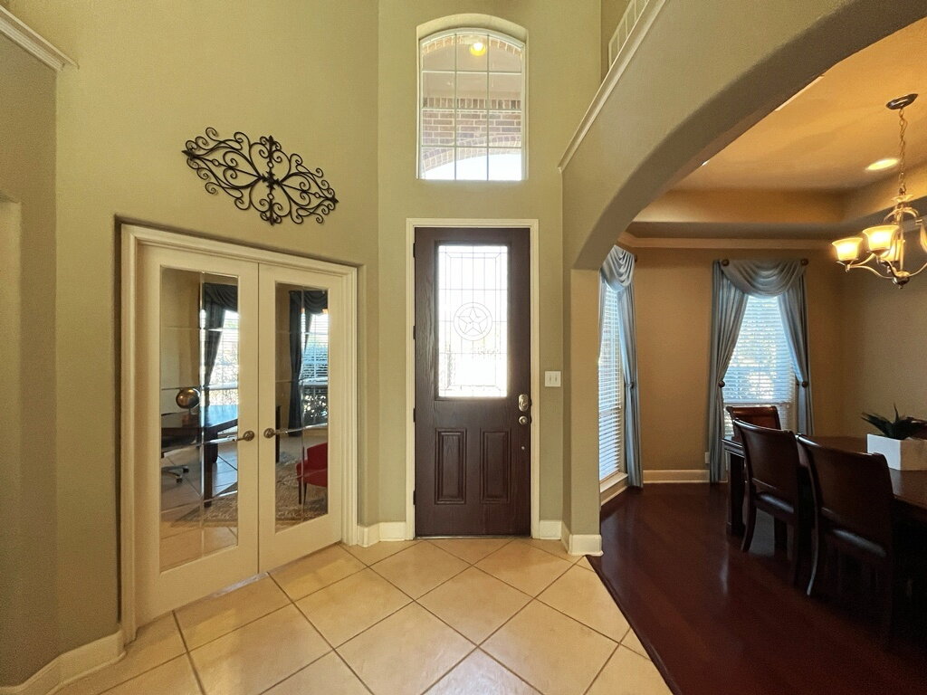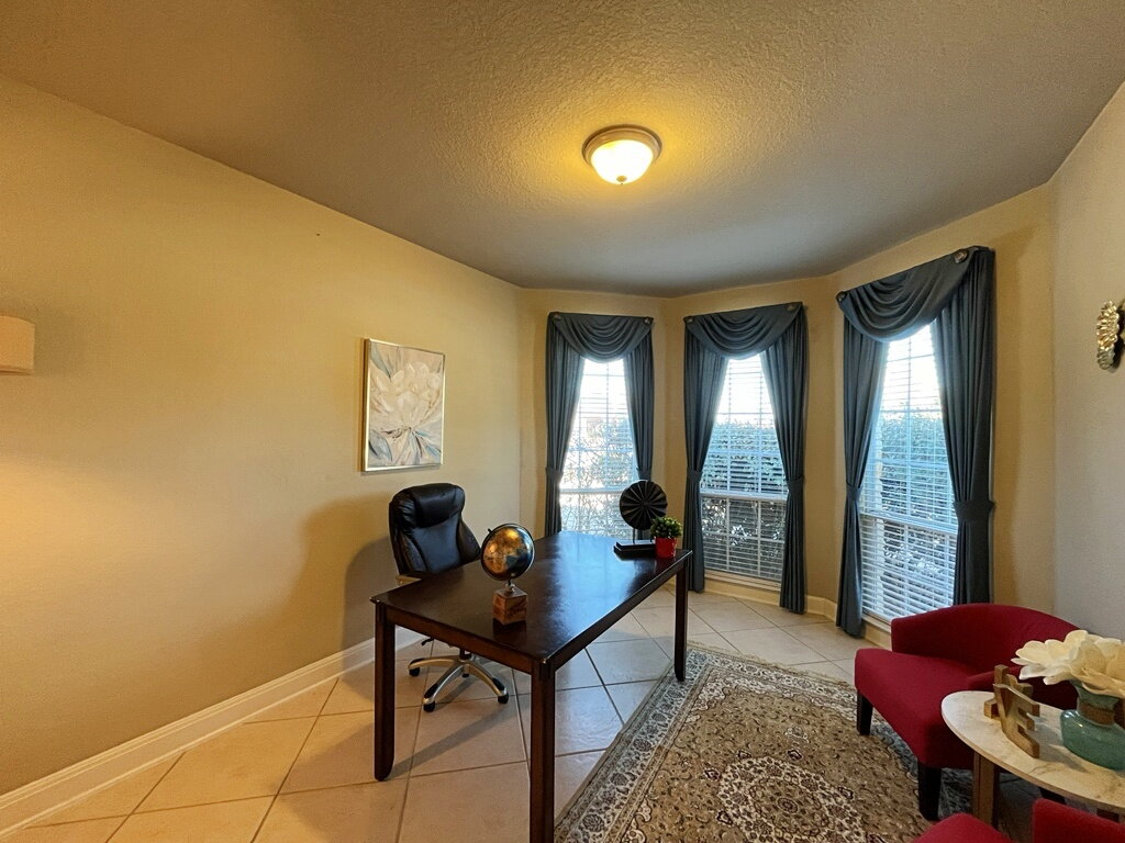 Welcome to this beautifully designed 3-bedroom, 2.5-bath home, thoughtfully laid out for comfort and everyday living. Inside, you’ll find a mix of carpet, ceramic tile and vinyl flooring, complemented by high ceilings and stunning floor-to-ceiling windows that fill the space with natural light. The home offers two spacious living areas, two dining areas, a dedicated office or studio, and a convenient half bath, ideal for both relaxing and entertaining. A cozy fireplace and an alarm system add both warmth and peace of mind.